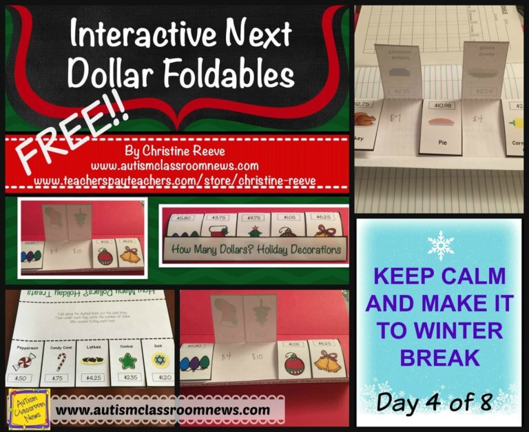 Welcome to day 4 of the 8 day countdown to winter break! This one is for anyone who has students working on money and using the next dollar strategy. I’m excited because I’ve been experimenting with some different formats of materials. These are foldables. They fold up like a matchbook and the students the students construct them and then complete them. If you use interactive notebooks, they can be implemented into them as well. The picture below will give you more information about them.