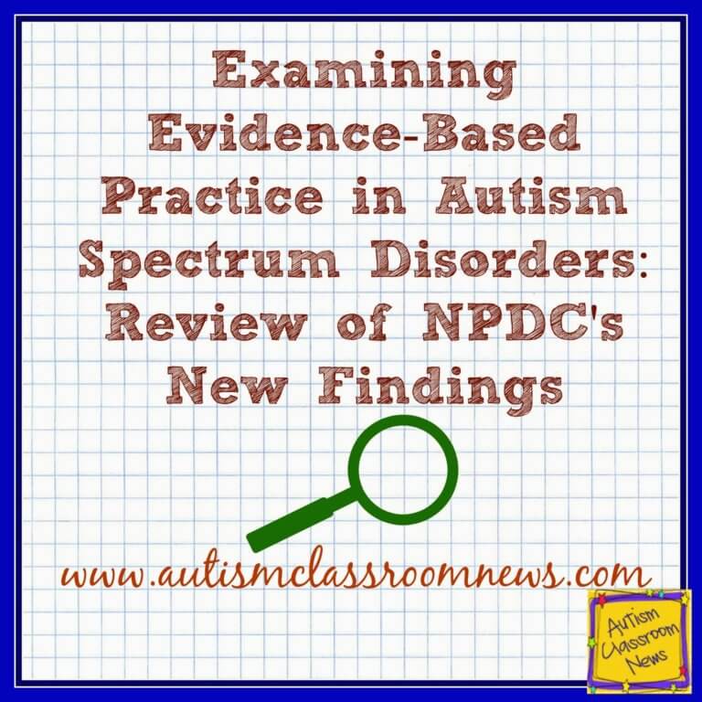 I wrote about evidence-based practice and some of the difficulties with determining what is an evidence-based practice in ASD in this post. If you aren’t familiar with the NPDC for ASD, I highly recommend their site for information and tools. Last week they published a new review of the evidence on educational interventions for students with ASD. They focused only on educational approaches, so it does not include medical approaches. They reviewed the evidence overall in 2010 and now they have re-reviewed a larger set of literature with more stringent standards. The change in the standards and the inclusion of a longer time period in the review means that some things were added as evidence-based practices (EBP) and some that were classified as EBP were not longer considered EBPs. They also combined and reorganized some of the categories.