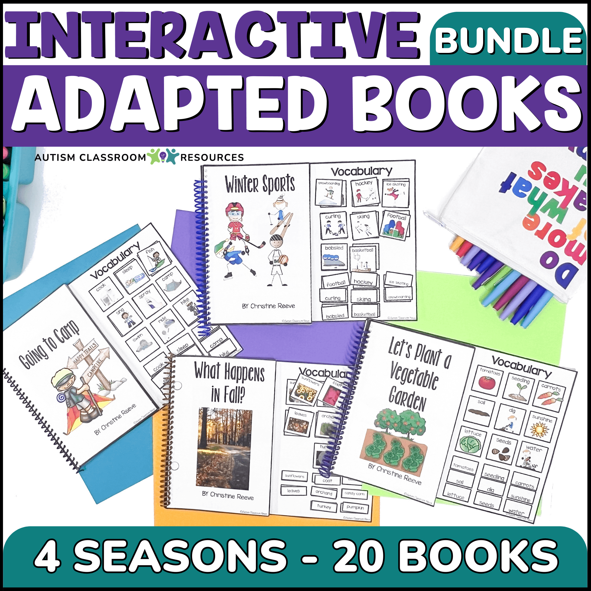 These interactive adapted books are designed to teach vocabulary and to work for a wide range of ages for students with autism and in special education. Adapted books are great for morning meeting, circle time, small group instruction as well as for independent work and independent reading once they have been introduced to the students.